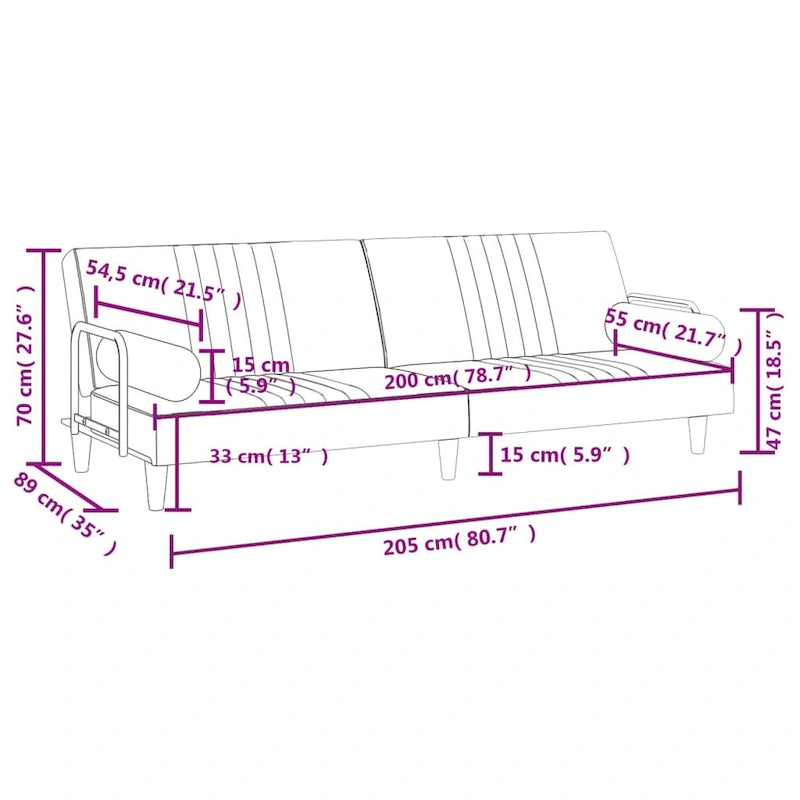 vidaXL Sofa Bed with Armrests Couch Recliner Loveseat Folding Daybed Velvet - 80.7 x 35 x 27.6
